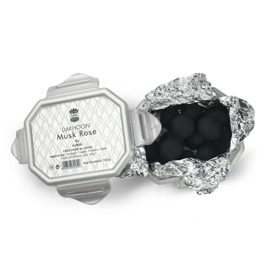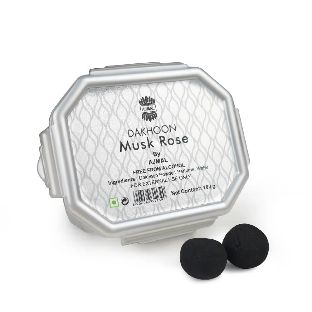 Description  Ajmal Musk Rose Dakhoon is a luxurious 100g fusion of traditional bakhoor wood, elegantly infused with the tender allure of rose and the gentle depth of musk. As it burns, this premium Ajmal bakhoor unveils a graceful fragrance that envelopes your space in a soothing, romantic ambiance, evoking warmth, serenity, and timeless charm.