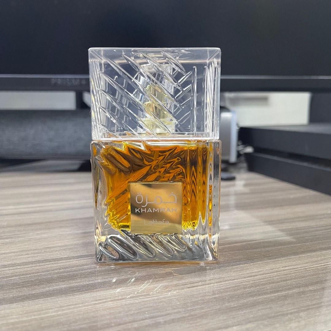 | Description | Lattafa Khamrah Eau de Parfum is a luxurious oriental-spicy unisex perfume that combines precious spices, the warmth of woody notes, and the softness of vanilla. The fragrance is released by the Arab luxury perfume brand Lattafa Perfumes and comes in a luxurious crystal bottle. The top accord of Khamrah is the citrusy freshness of bergamot framed by the warm, velvety spice of cinnamon and refined clary sage. The heart of the perfume resonates with the delightful creamy smell of praline, melting in a fragrant haze of sweet fruity notes and tuberose floral nuances. Whereas the base of Lattafa Khamrah delivers a sumptuous aromatic trail that blends the sensual sweetness of vanilla with spicy precious woods, sweet smoky oud, smoky aromatic myrrh, spicy tonka bean, and vanilla resinous benzoin, shimmering softly in the beams. |