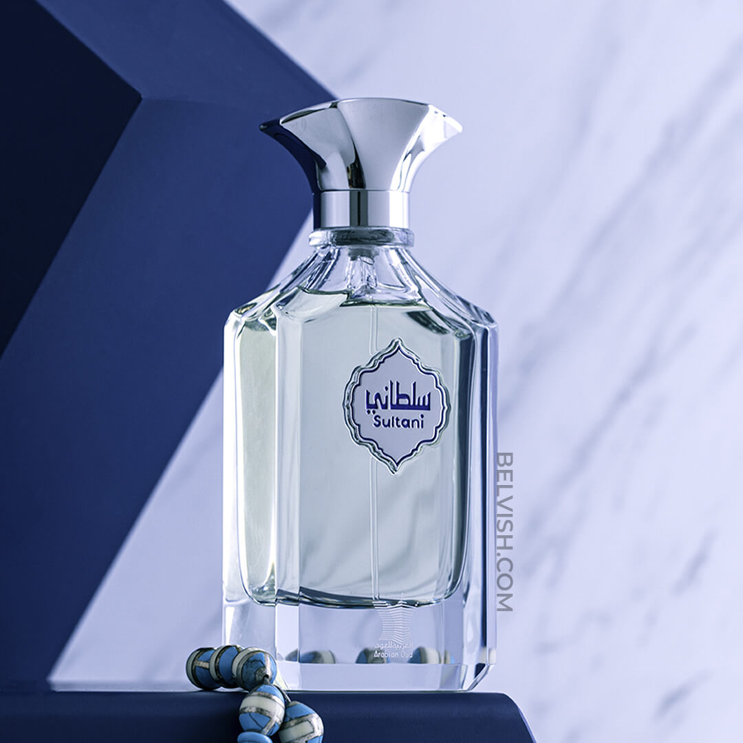 | Description | Sultani by Arabian Oud is an oriental fragrance designed for men, introduced in 2020. It opens with vibrant top notes of cardamom, pink pepper, red berries, bergamot, and tangerine. The heart features an elegant blend of Damask rose, lily-of-the-valley, and freesia, while the base is grounded with the rich and warm aromas of white musk, sandalwood, amber, and patchouli |
